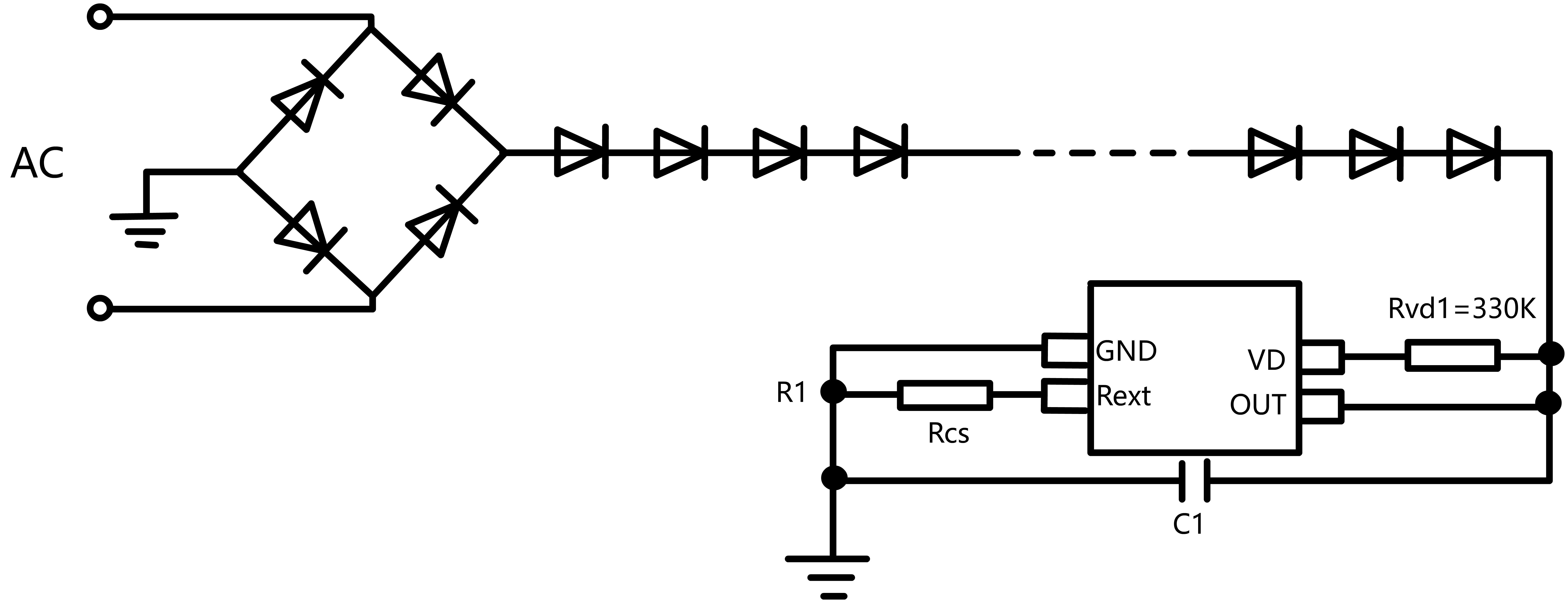 電流精度可控制在±3%以內,由外部電阻設定,峰值電流60mA ,可多芯片并聯使用增加電流輸出能力。