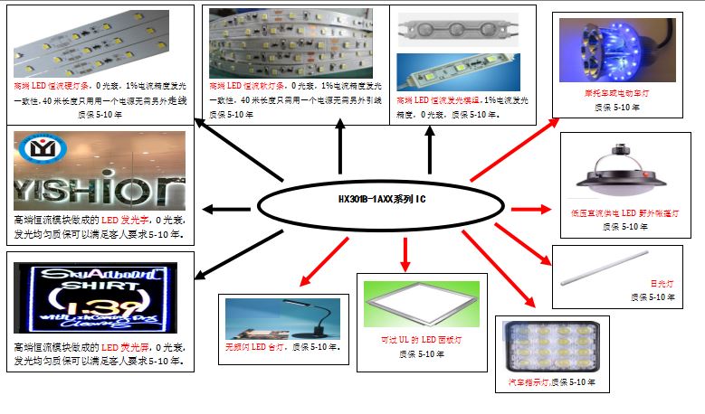 HX301B-1AXX恒流芯片目前已形成一個(gè)系列,型號(hào)有:?HX301B/1A10,1A15,11A8,1A20,1A25,1A30,1A35,1A40,1A45,1A50,1A55,1A60,1A65,1A70,1A75。這是表示各種電流的大小,單位是ma.