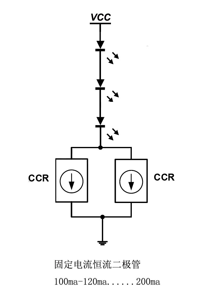 大電流恒流二極管產品是一款簡單易用的定電流驅動芯片,具有良好的負載與電源調變率和極小輸出電流誤差。該芯片采用線性恒流方式使LED工作在最佳狀態,即使在大面積光源上,電源及負載大幅波動時都能讓LED亮度均勻一致, 延長了LED使用壽命。該系列芯片采用了SOT89-3封裝,類似常規恒流二極管 (CRD),通過內建的高穩定度線性恒流電路實現恒流輸出,極大簡化了應用難度。在高壓電源和低LED負載電壓的應用場合,可采用接入一顆高壓MOSFET或BJT的方式來分攤多余電壓,從而方便應用在市電通用照明場合。內建的過溫保護電路,在管芯溫度超過135℃時會自動平滑減小輸出電流,實現良好的過溫保護與提醒功能。